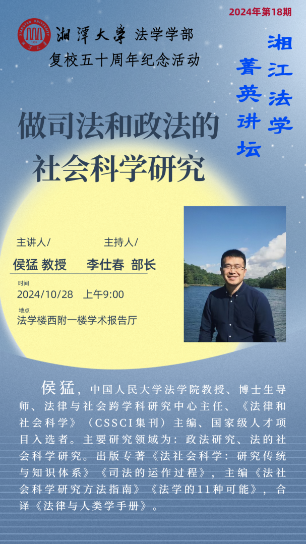 【湘江法学菁英讲坛】侯猛:做司法和政法的社会科学研究