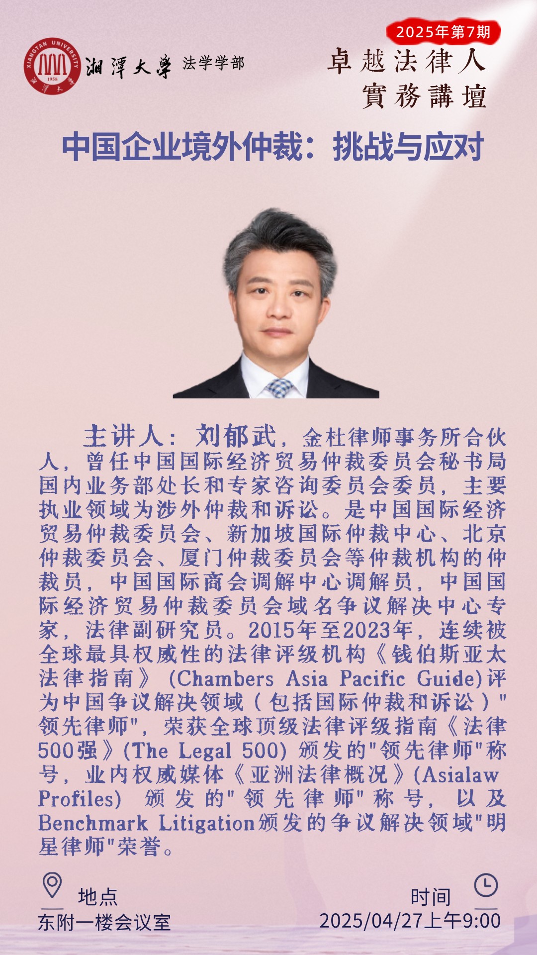【卓越法律人实务讲坛】2025年第6期刘郁武:中国企业境外仲裁:挑战与应对