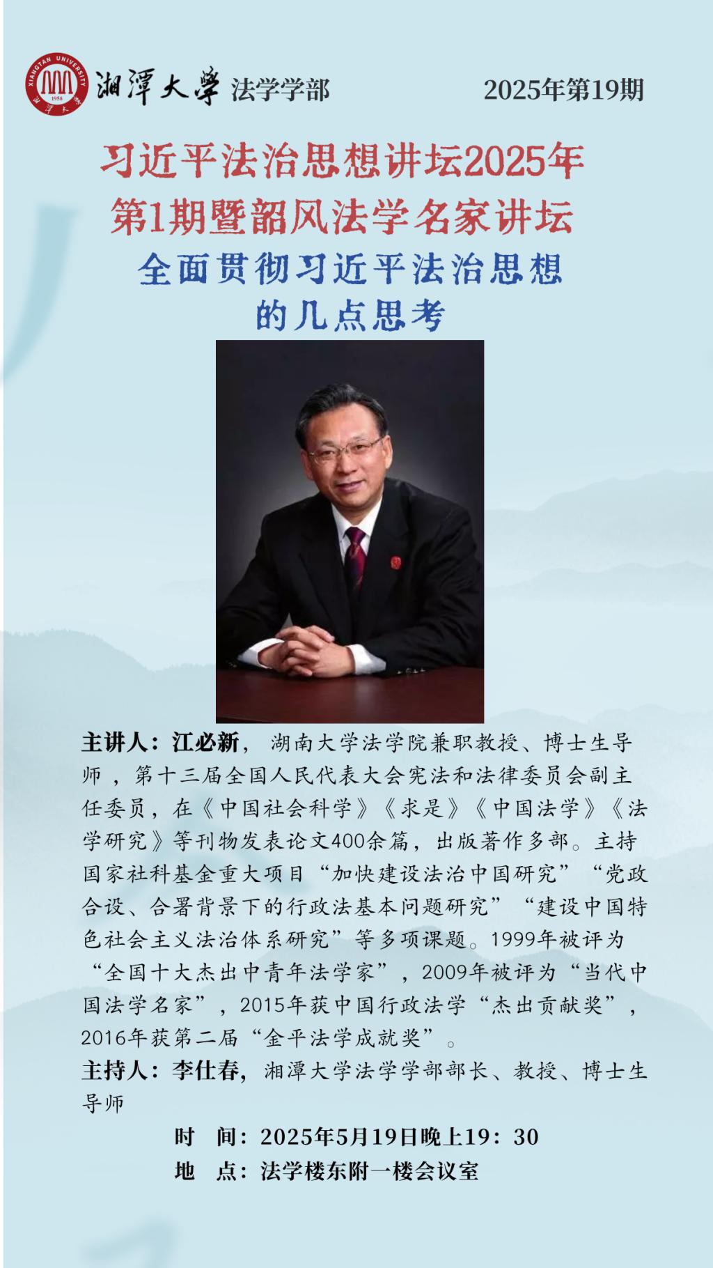 【bevictor伟德官网,伟德国际1946】第19期暨习近平法治思想讲坛2025年第1期江必新:全面贯彻习近平法治思想的几点思考