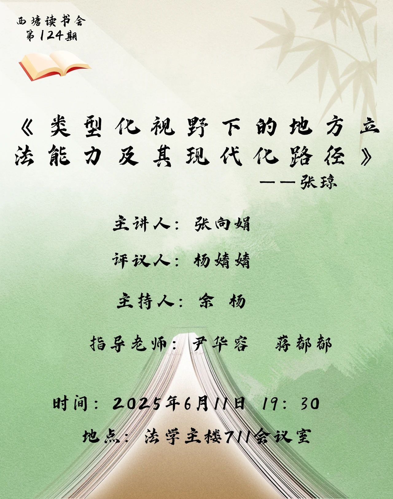 【西塘读书】第124期:《类型化视野下的地方立法能力及其现代化路径》