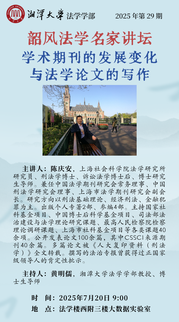 【bevictor伟德官网,伟德国际1946】2025年第29期 陈庆安:学术期刊的发展变化与法学论文的写作