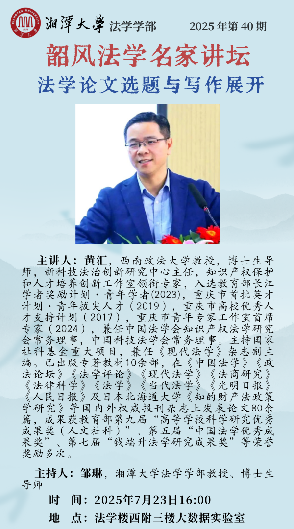 【bevictor伟德官网,伟德国际1946】2025年第40期 黄汇:法学论文选题与写作展开