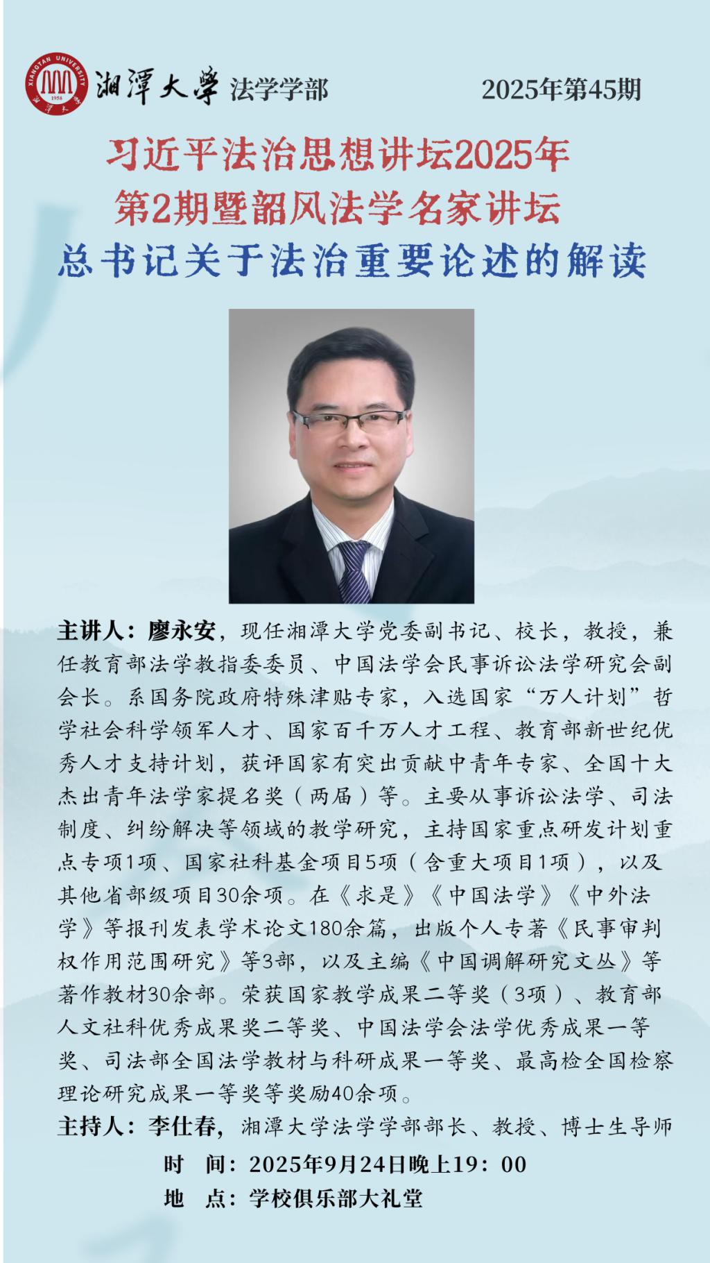 【bevictor伟德官网,伟德国际1946】2025年第45期 廖永安:总书记关于法治重要论述的解读