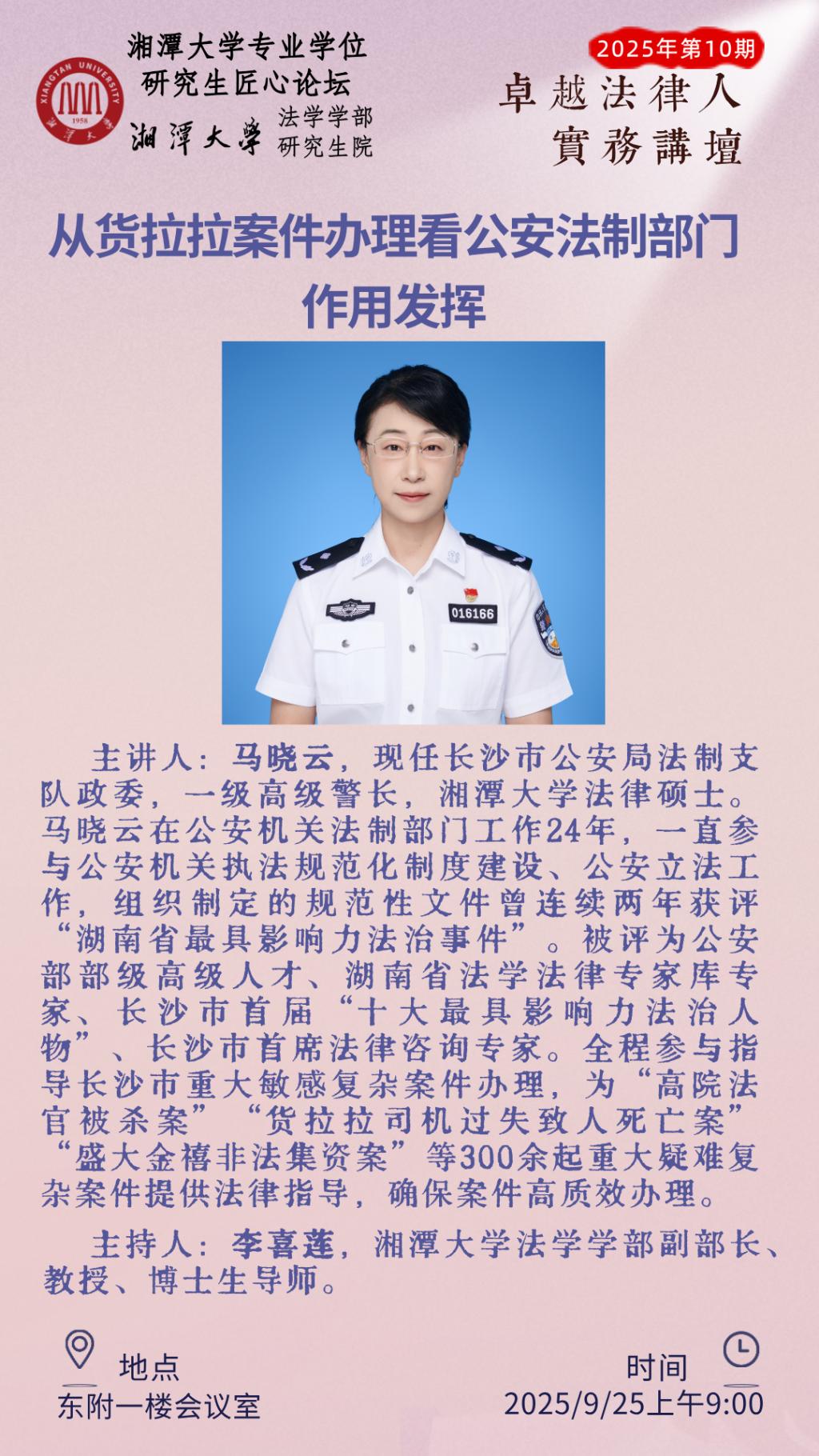 【卓越法律人实务讲坛】2025年第10期马晓云:从货拉拉案件办理看公安法制部门作用发挥