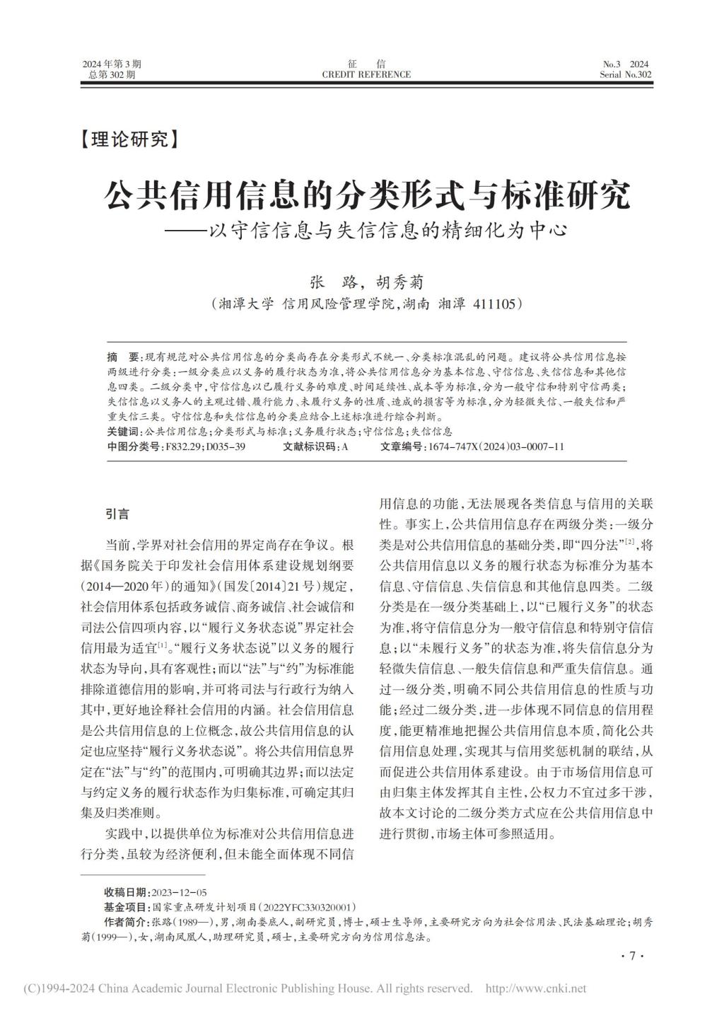 张路博士论文刊《公共信用信息的分类形式与标准研究——以守信信息与失信信息的精细化为中心》刊发于北大核心期刊《征信》2