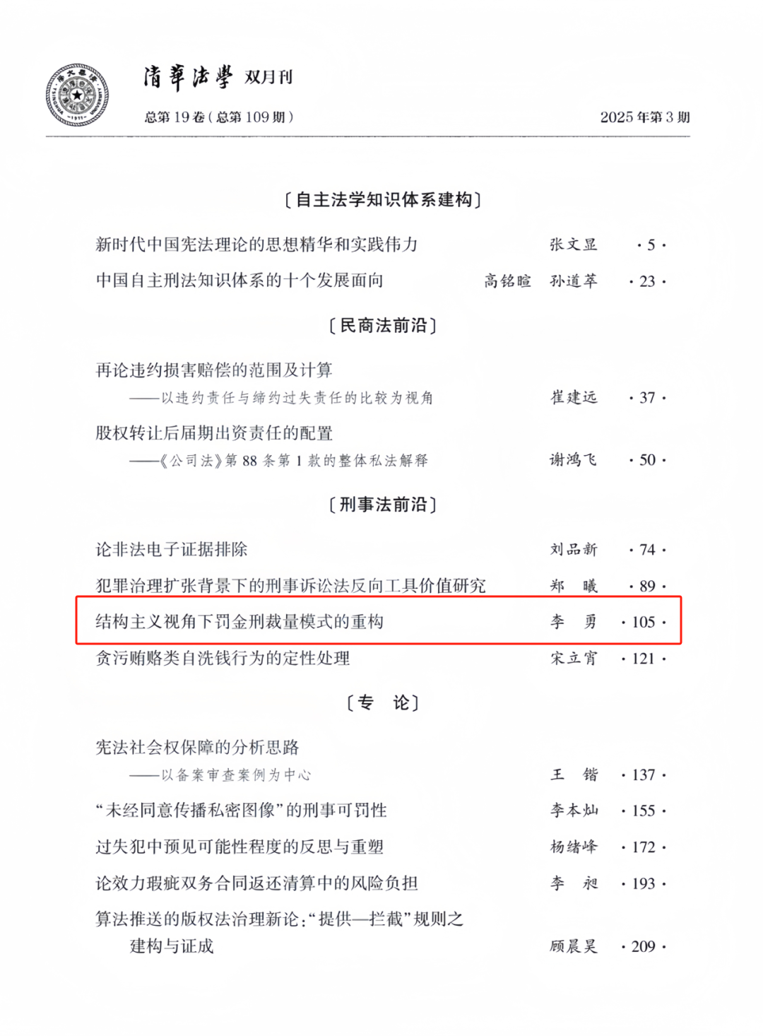 近日,bevictor伟德官网,伟德国际1946特聘教授、江苏省南京市人民检察院法律政策研究室主任在CLSCI来源期刊《清华法学》2025年第3期发表论文《结构主义视角下罚金刑裁量模式的重构》。