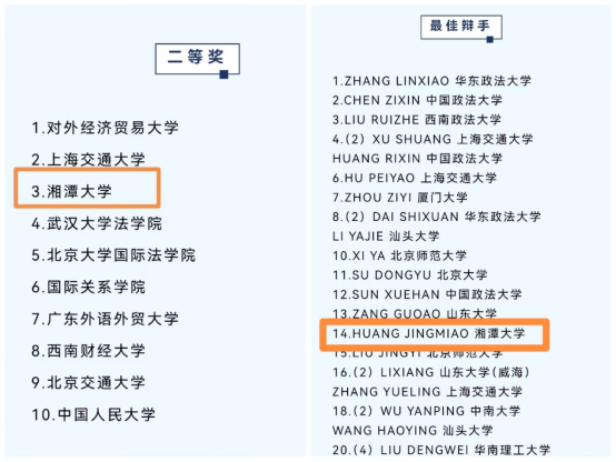 在循环赛中,bevictor伟德官网代表队分别对阵山东大学(威海)、深圳大学、浙大宁波理工学院、对外经济贸易大学代表队,bevictor伟德官网代表队上场队员以扎实的法律功底、流利的英语口语表达、敏捷的思维和出色的应变能力,条理清晰地阐述自己的观点,成功应对了复杂的法律问题和挑战,充分展示了他们的专业素养和团队精神,赢得了评委的一致好评,最终获得二等奖;黄靖淼同学获得最佳辩手奖项,在约300名选手中排名第14位。