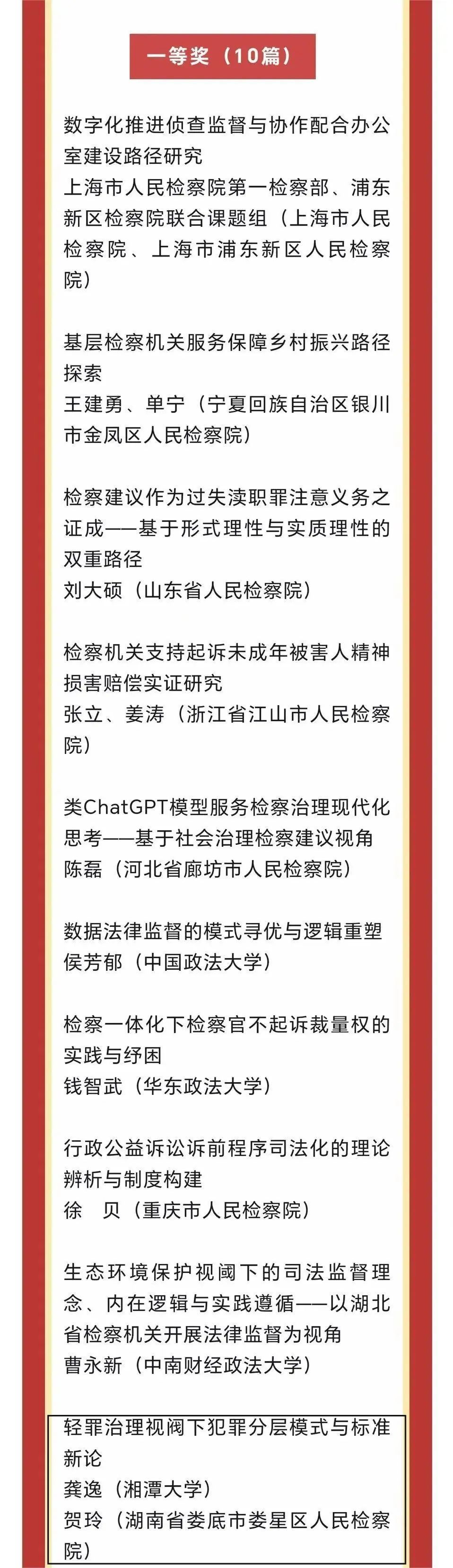(图源:《中国检察官》公众号颁布的获奖信息)