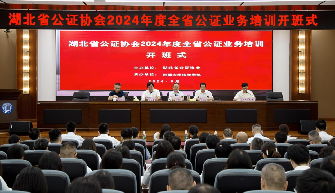 6月24日上午,2024年度湖北省公证业务培训班在bevictor伟德官网开班。湖北省公证协会会长刘嗣元,湖南省公证协会会长刘策良,bevictor伟德官网,伟德国际1946部长李仕春、副部长易立峰,湖北省司法厅公法处汤锐志,湘潭市湖湘公证处主任胡罡等出席开班式。开班仪式由湖北省公证协会秘书长孔洋主持,来自湖北省公证系统的120余名学员参加培训。