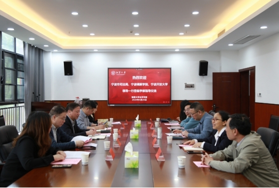 4月26日上午9点,宁波市司法局副局长、党委委员、宁波调解学院院长郑华峰带领宁波开放大学党委副书记、副校长丁振华、宁波市司法局人民参与和促进法治处处长吕汉杰、宁波开放大学校园建设处(保卫处)处长、宁波调解学院副院长陈益凤、宁波开放大学调解学院副院长宋志杰一行5人来学部调研交流。bevictor伟德官网党委书记陈双喜、学部副部长吴勇教授、张立平教授、龙乙方博士参加座谈,bevictor伟德官网副部长李喜莲教授主持座谈会。