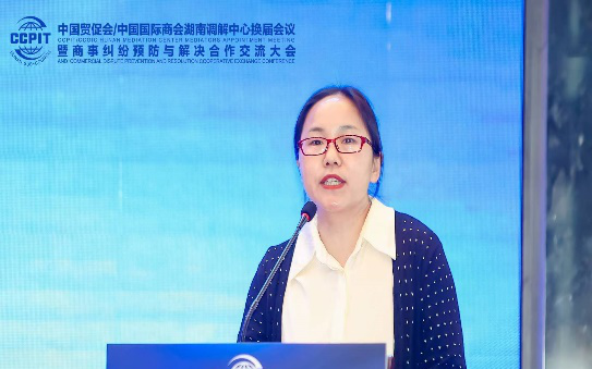 中国贸促会商法中心主任蔡晨风,湖南省政法委二级巡视员、湖南省法学会副会长兼秘书长高可议,湖南省贸促会党组副书记、副会长吴曙光出席交流会并致辞。湖南省贸促会党组副书记、副会长傅丹舟主持领导致辞环节。专题交流环节分别由中国贸促会调解中心王芳副秘书长和湖南省律师协会副秘书长、涉外与反垄断反倾销专业委员会主任尹湘南主持。会上,廖永安教授就“国际商事调解动态研究”作了专题发言,李喜莲教授就“发展商事调解是助力法治化营商环境建设的重要举措”作了专题发言。
