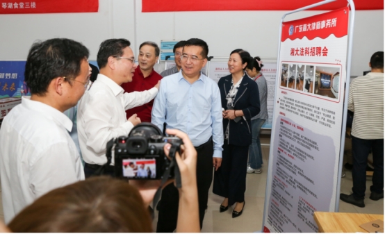 bevictor伟德官网校长廖永安、bevictor伟德官网领导班子及招生与就业指导处负责人等到招聘会现场,与用人单位进行了深入交流,广泛听取了行业人才需求、校企合作深化、法治人才培养优化等方面的宝贵意见和建议。