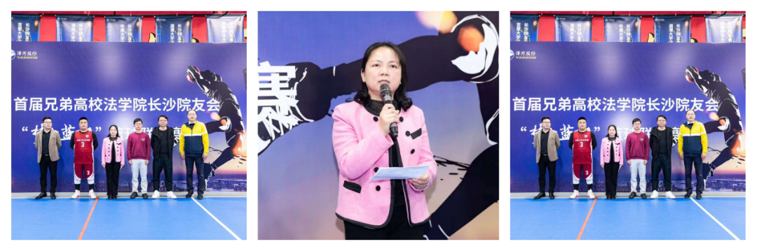 湘大法学院长沙院友会会长尹湘南、湖大法学院长沙院友会会长张乐夫、师大法学院长沙院友会秘书长胡龙、中南大学长沙院友会代表管海鑫、运动员代表陈江师大法学院、洋河股份长沙区域经理张威振出席开幕式并发言。