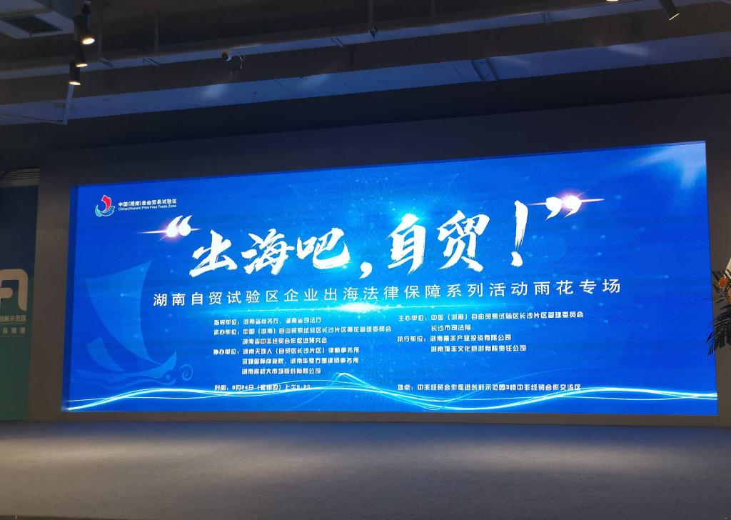 8月24日,“出海吧!自贸”—湖南自贸试验区企业出海法律保障系列活动雨花专场在自贸区长沙片区中非经贸博览会常设展馆举办,我院副教授、中非经贸法律研究院研究员刘功奇应邀参加活动,并做主题演讲。湖南省司法厅、自贸区长沙片区管委会、雨花区政府等有关单位负责人以及省内对非重点企业60余人参加会议。