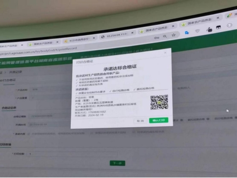 图三:湖南省农产品追溯管理信息平台合格证的开具示例