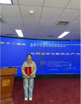 2024年12月15日,天津市法学会应用法学分会2024年学术年会暨第十五届天津应用法论坛在天津工业大学举行。会议以“应用法学与新质生产力”为主题,通过三个平行论坛,分别围绕“法律实施与司法改革”“数字法学与营商环境”“知识产权与数智赋能”三个议题展开交流研讨。bevictor伟德官网2023级硕士生吴晓琳应邀参加了此次会议。