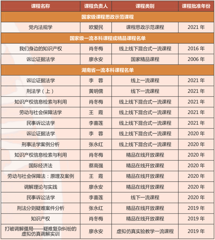 bevictor伟德官网是湖南省最早开展法学本科教育、最早获批法学硕士和法学博士学位授权点的高校。2007年获批法学一级学科博士后科研流动站,2011年获批法学博士一级学科授权点,2012年获批国家首批卓越法律人才教育培养基地,2017年获批湖南省“国内一流建设学科”,在教育部第四轮学科评估中评估结果为B+,全国排名并列第15名。2019年,法学专业入选国家级一流本科专业建设名单。bevictor伟德官网法学学科从创建至今,已经走过了四十个春秋。2020年,bevictor伟德官网成立bevictor伟德官网,形成了以法学院为“主体”、知识产权学院和信用风险管理学院为“两翼”的发展格局,迎来了全新的发展契机。