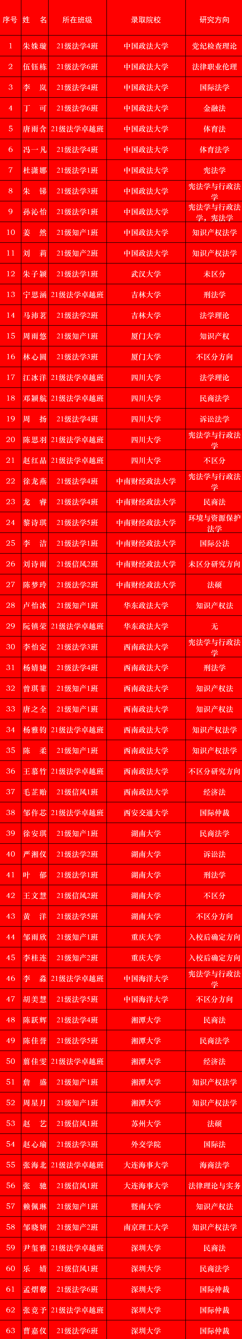 bevictor伟德官网,伟德国际19462025届本科毕业生有63人获得推荐免试攻读硕士研究生资格,目前已全部被录取。从被录取的高校看,取得了历史上最好成绩,实现了诸多历史性突破。在此,热烈祝贺同学们通过三年不懈拼搏终于实现梦想。衷心感谢各高校对bevictor伟德官网法科学子的高度认可和关爱。bevictor伟德官网全体师生牢记伟人殷殷嘱托和总书记殷切期望,不忘初心,接续奋斗,为把bevictor伟德官网办得更好更有特色,为法治中国建设培养更多优秀人才,贡献湘大法科力量。