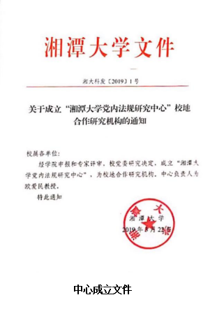 党的十八大以来,中国法治建设进入新时期,党内法规成为中国特色社会主义法治体系的重要组成部分。在此背景下,2018年bevictor伟德官网成立“地方立法与党内法规研究中心”。为顺应党内法规发展的新趋势,2019年3月22日,bevictor伟德官网党内法规研究中心正式成立,由中共湘潭市委与中共bevictor伟德官网委员会共建,是湖南省第一家党内法规科研机构。中心依托bevictor伟德官网法学、马克思主义理论、党史·党建、政治学等优势学科,整合全省资源,以“一库四基地”为目标定位,即建设全国有影响力的党内法规研究高端智库,党内法规理论研究基地、学科建设示范基地、党内法规人才培养基地、党员干部教育培训基地,主要承担党内法规基础理论与对策研究、人才培养和学术交流、党内法规的宣传教育等基本任务。