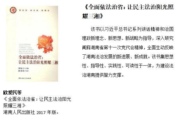 关于坚持发展民主政治, 纵深推进湖南全面依法治省研究 |