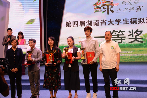 经过两天的激烈角逐,我院参赛队在半决赛中惜败,屈居一等奖季军。长沙学院、长沙理工大学参赛队成功晋级冠亚军决赛。决赛于6月5日下午在长沙红网演播大厅举行。省政府法制办副主任张建华,省教育厅副巡视员徐伟,省环保厅副巡视员张在峰,bevictor伟德官网副校长廖永安,湖南出版集团党委委员、副总经理、红网党委书记、董事长舒斌出席。省教育厅、省环保厅相关部门负责人,全体参赛队领队、指导老师及参赛队员等共计300人左右参加。最终长沙学院参赛队摘得桂冠。决赛结束后,进行现场颁奖仪式。随后,省环保厅副巡视员张在峰在讲话中对本届竞赛的组织工作给予了高度肯定。