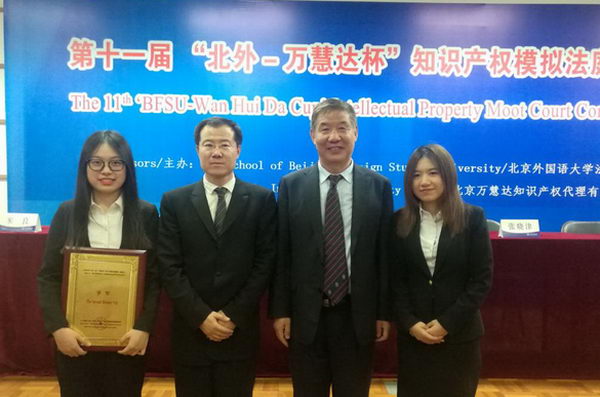2018年5月26日至27日,第11届“北外·万慧达”杯知识产权模拟法庭竞赛在北京外国语大学隆重举行。“北外—万慧达杯”知识产权模拟法庭竞赛全程使用英文进行,是国内唯一严格按照国际模拟法庭比赛的通用规则的知识产权法专题模拟法庭竞赛。包括中国政法大学、华东政法大学、澳大利亚邦德大学、美国托莱多大学、中国台湾地区东吴大学等多支国内外知名法学院代表队参加,竞争非常激烈。