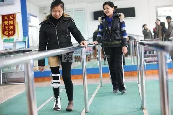 图三:中国全面开展残疾预防,深度推进精准康复,2017年,残疾人康复服务覆盖率达到65.6%,中国残疾人康复权保障体系逐步完善。图为残疾人在内蒙古赤峰康复中心进行辅具适配和行走康复训练。