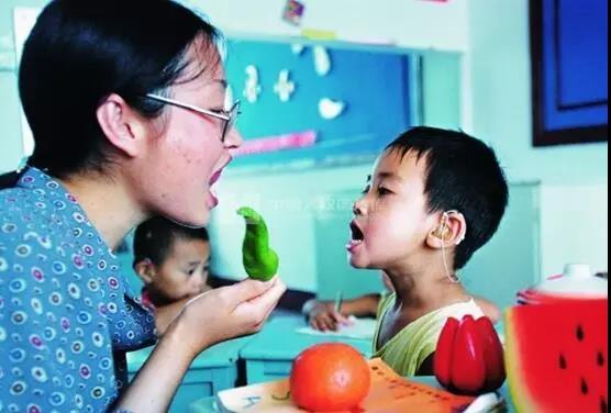 图四:截至2016年,中国视力、听力、智力三类残疾儿童义务教育入学率超过90%。2017年,10818名残疾人被普通高校录取,残疾人受教育权保障持续改善。图为听障儿童接受口语训练。