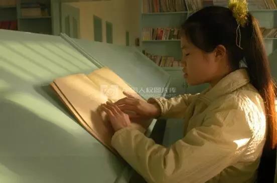 图五:截至2017年,全国省、地市电视台共开设电视手语栏目285个,开设残疾人专题广播节目223个,全国各类残疾人艺术团体达281个,中国残疾人文化权利保障取得显著进步,图为广西盲人学生阅读盲文读物。