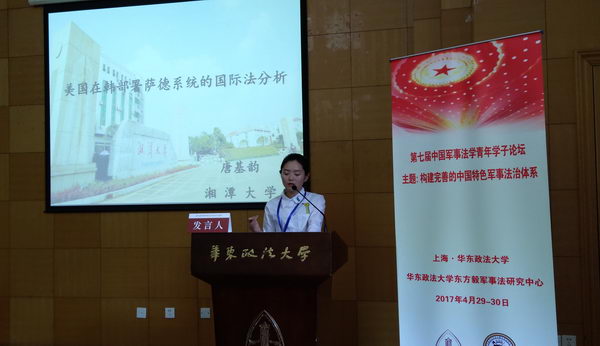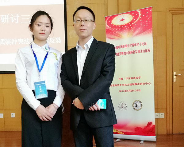 2017年4月29日至30日,第七届中国军事法学青年学子论坛在上海华东政法大学隆重举行。本次论坛以“构建完善中国特色军事法治体系”为主题,近30家军地机关、院校和科研机构的120余位专家、学者和研究生与会,共提交论文100余篇。应论坛邀请,我院刑法学科组万志鹏副教授、国际法学专业研究生唐基韵代表我院军事法研究中心参加了本次论坛。