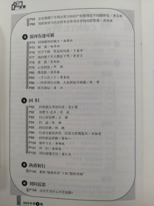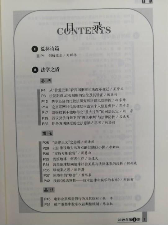 2019年第一期目录