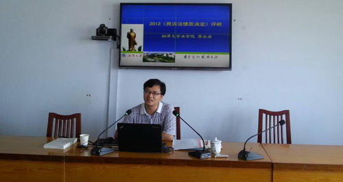 之后,廖院长以“新民事诉讼法评析”为题,从出台背景、理念创新、实践指导意义和仍需改进的地方等几个方面展开论述,为法官们带来了一场精彩的讲座。