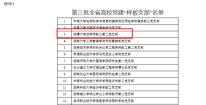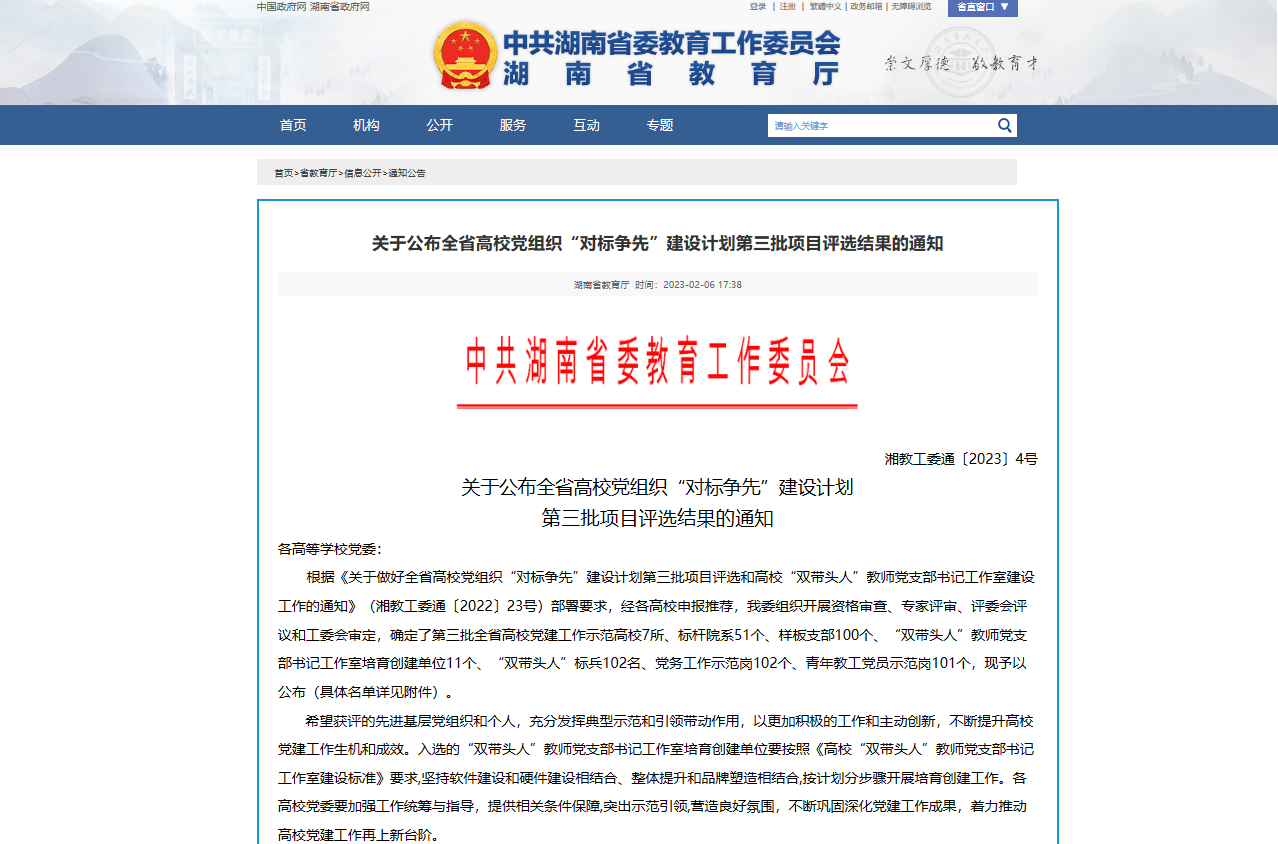 近日,湖南省高校党组织“对标争先”建设计划第三批项目评选结果公布,我院教工第二党支部获评全省高校党建工作“样板支部”。