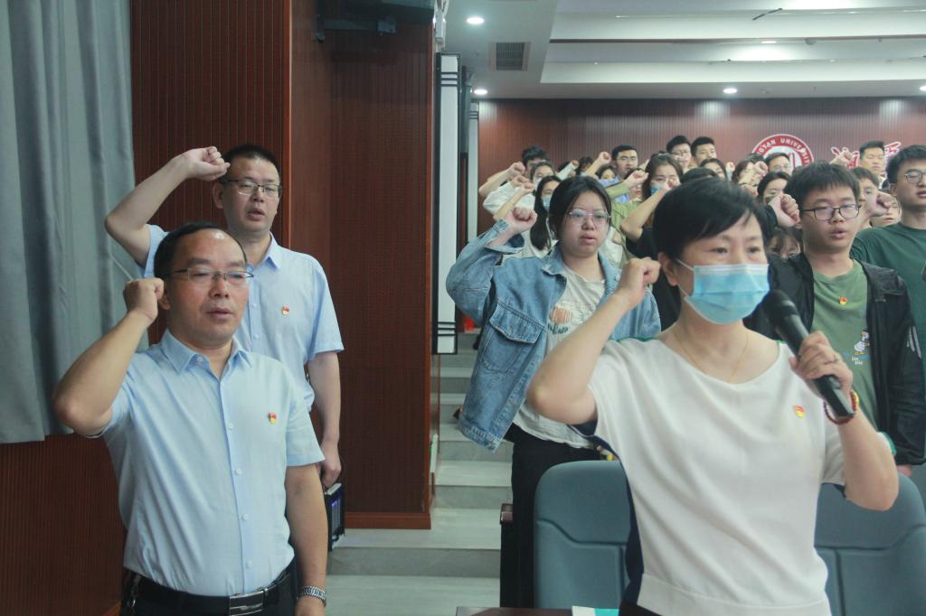 宣誓仪式在激昂的国歌中拉开了帷幕,田良富书记宣读了2023年上半年新发展党员名单。随后毕业生党员同2023年上半年新发展党员一道进行了入党宣誓,临近毕业之际,毕业生党员重温誓词,再铭初心。一样的誓词,不变的是初心和青春力量的传承。