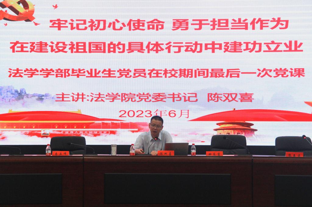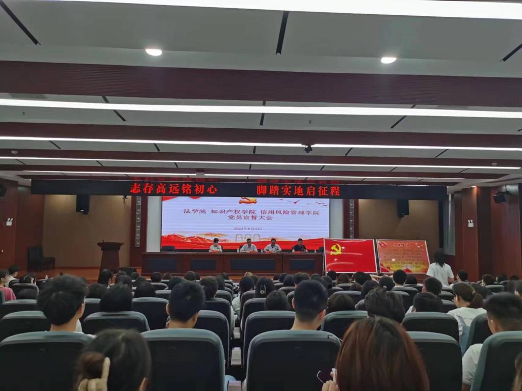 为深入贯彻落实习近平新时代中国特色社会主义思想主题教育,增强党员自豪感和荣誉感,2023年6月5日上午,bevictor伟德官网法学院、知识产权学院、信用风险管理学院在法学楼西附一楼学术报告厅举行“志存高远铭初心,脚踏实地启征程”2023届毕业生党员教育活动。
