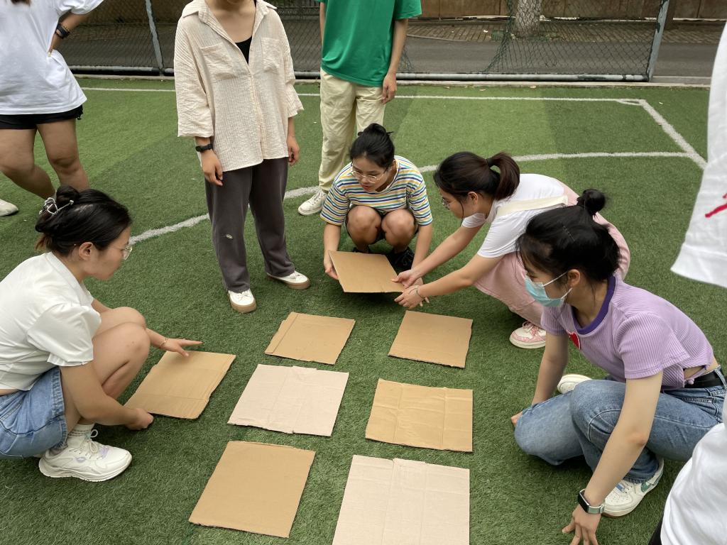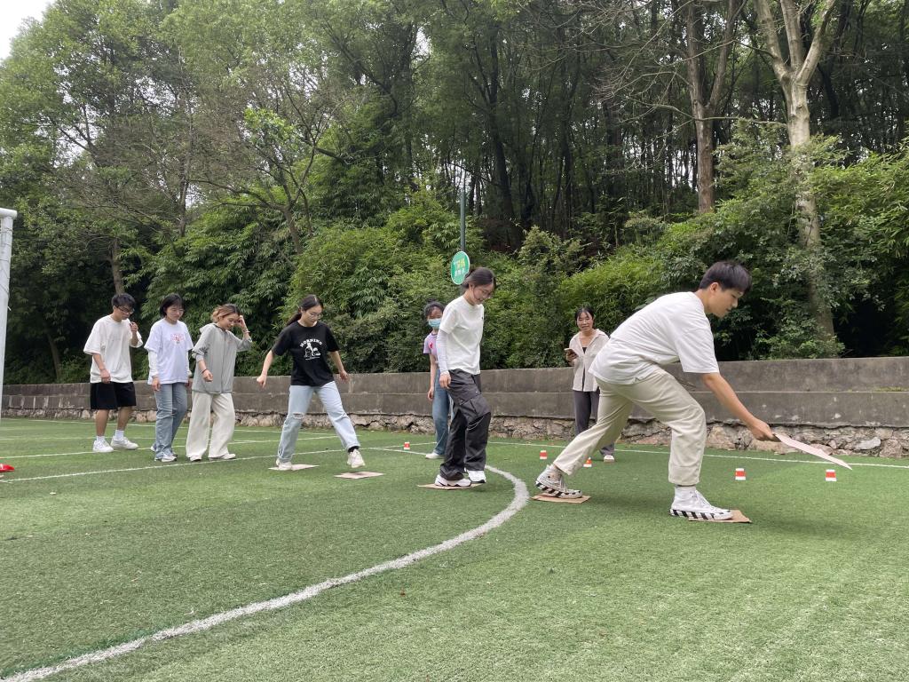 本次活动包含了“同舟共济,众志成城”“飞夺泸定桥”“不怕苦、不怕难,红军过五岭”“狼牙山五壮士”“驿站传书,红船精神之传承”五个项目。党员们分为两组进行团队赛,队员们齐心协力一起完成各项挑战。在“飞夺泸定桥”环节,第一名队员向前搭放纸板,队尾的队员不断地把身后的纸板传给第一个队员,队员们一起踩着纸板前进,小组成员们既要防止脚接触到纸板外,又要紧张地加快速度,现场笑声连连,最终第二组以2分54秒的佳绩获胜。在接下来的趣味项目中,更是一片欢声笑语,充分展示了党员们的活力与风采。