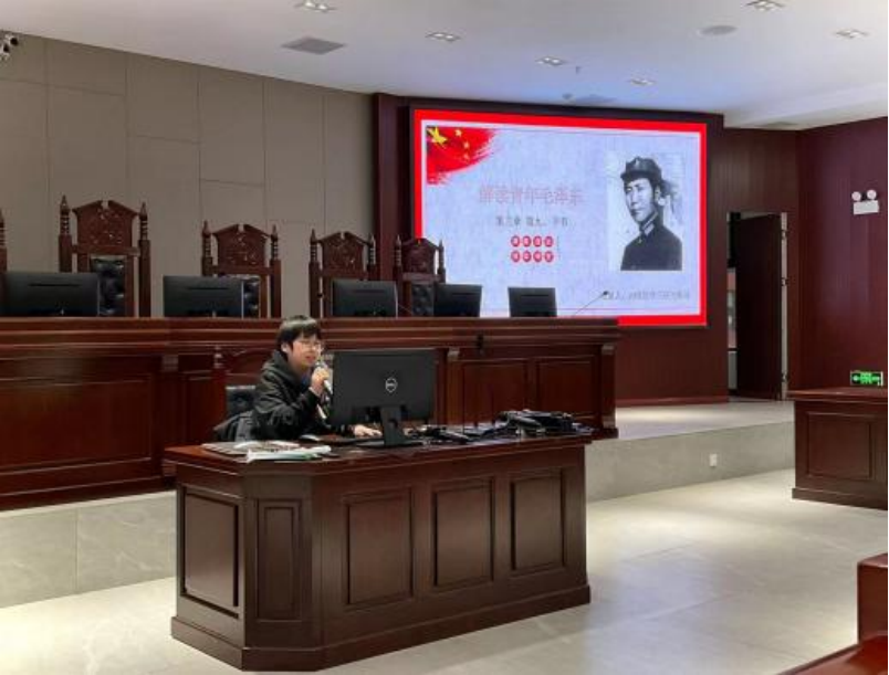 2022年11月29日下午,中共bevictor伟德官网法学院学生第二党支部在法学楼西附二楼模拟法庭召开了十一月主题党日活动,支部全体党员参加了该次活动。本次活动开展了共读一本书《解读青年毛泽东》以及关于“就业”这一最大民生问题的时事学习和讨论,以关心时事新闻心系民情民生,以探索伟人成长经历学习先进思想。