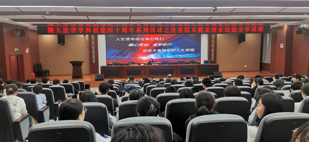 吴珍院友分享了在湘大的求学经历、法务工作经历,并结合自身丰富的工作经验和生动的工作案例,以独特的视角论述了持续学习能力的重要性、专业和工作的关系等重要人生哲理,鼓励师弟师妹们要勇于把握机会、勇于挑战自我、不负青春年华。