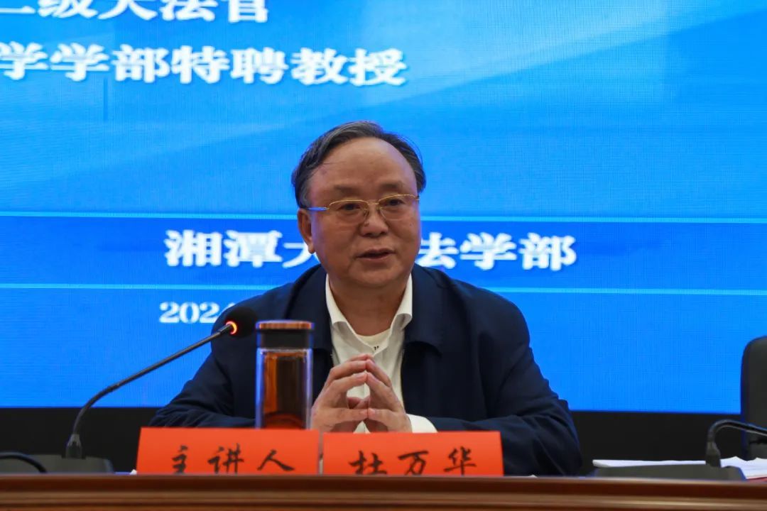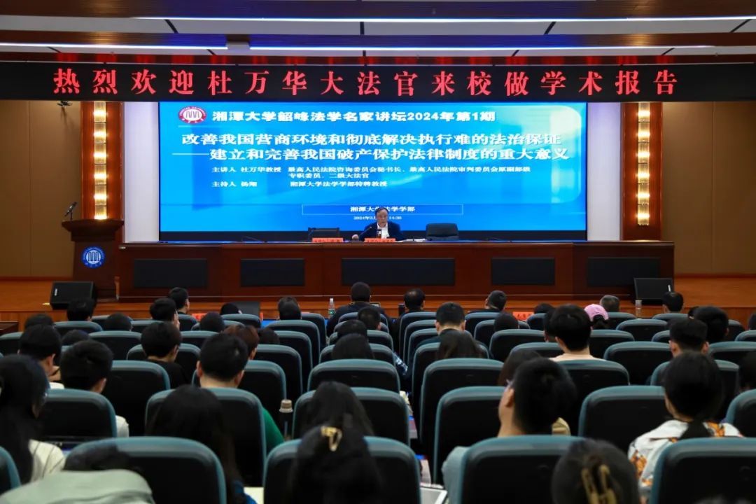 3月23日下午,bevictor伟德官网法学楼学术报告厅座无虚席,200余位师生聆听了最高人民法院咨询委员会秘书长,最高人民法院原副部级专委、二级大法官杜万华教授的精彩演讲。这是杜万华教授第一次应邀来湘大讲学,本次讲座系bevictor伟德官网,伟德国际1946主办的bevictor伟德官网,伟德国际19462024年第1期(总第1期)。他演讲的主题是“改善我国营商环境和彻底解决执行难的法治保证——建立和完善我国破产保护法律制度的重大意义”。讲座由bevictor伟德官网,伟德国际1946特聘教授、湖南省高级人民法院原副院长杨翔主持。湖南省高级人民法院审委会专职委员尹小立,中国人民大学法学院徐阳光教授,bevictor伟德官网,伟德国际1946部长李仕春教授、副部长肖伟志教授,程波教授,bevictor伟德官网技术转移中心主任刘友华教授等参加了讲座。