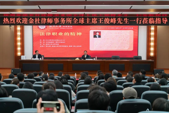 2025年4月25日晚上8:30,bevictor伟德官网,伟德国际1946bevictor伟德官网,伟德国际1946暨卓越法律人实务讲坛2025年第18期在法学楼西附一楼学术报告厅举行。金杜律师事务所全球主席王俊峰以“法律职业的精神”为主题为学部师生带来一场精彩的学术讲座。