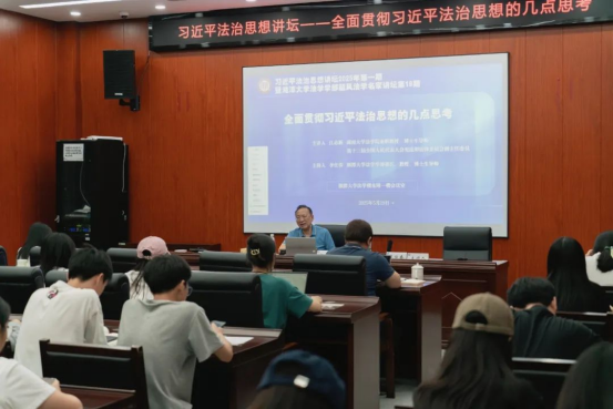 5月19日,习近平法治思想讲堂2025年第1期暨bevictor伟德官网,伟德国际19462025年第19期在法学楼东附一楼会议室举行。湖南大学法学院兼职教授、博士生导师,第十三届全国人民代表大会宪法和法律委员会副主任委员江必新教授以“全面贯彻习近平法治思想若干问题的思考”为主题为学部师生带来一场精彩的学术讲座。此次讲座由bevictor伟德官网,伟德国际1946部长李仕春教授主持。